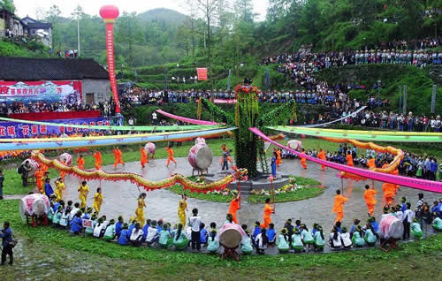鮮麗奪目的苗族服飾,情調(diào)別致的攔門酒,風(fēng)格獨(dú)特的卡鼓、攔路歌、邊邊場,會(huì)使你耳目一新,如癡如醉;還有傳統(tǒng)節(jié)日"四月八"的跳月跳花,"六月六"的山歌對(duì)唱,又會(huì)使您心動(dòng)神搖,嘆為觀止。
