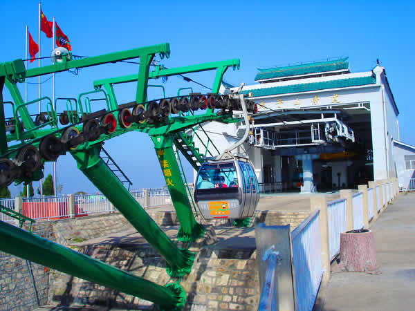 | 湖南武陵源索道有限公司成立于1995年12月7日,武陵源區(qū)人民政府和香港安達(dá)國(guó)際度假樂(lè)園(張家界)有限公司簽約,是由香港安達(dá)國(guó)際有限公司投資的外商獨(dú)資企業(yè)。1996年6月動(dòng)工興建天子山索道,1997年5月正式對(duì)外營(yíng)運(yùn)。天子山索道是單線循環(huán)式脫掛抱索器客運(yùn)索道,全部設(shè)備自?shī)W地利Doppelmayr公司進(jìn)口。設(shè)計(jì)水平線1960m,斜線長(zhǎng)2084m,兩端站高差692m。配單線自動(dòng)循環(huán)車(chē)廂41個(gè),每車(chē)廂載6人,運(yùn)速5m/s,每小時(shí)單向運(yùn)量900人。索道動(dòng)力電,采用雙電源;配備有應(yīng)急備用柴油機(jī),用于停電或發(fā)生設(shè)備事故時(shí)緊急疏散游客。