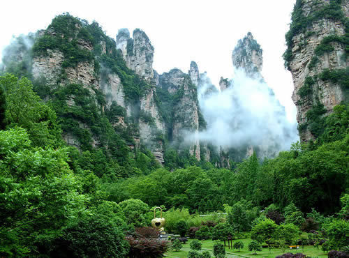 上 午:游覽“擴(kuò)大的盆景,縮小的仙境”有峰林之王稱號(hào)的---天子山景區(qū)(仙女散花、御筆峰、天子閣、云巖等景點(diǎn)),賀龍公園,十大元帥之一的——賀龍銅像,后前往山下的景區(qū)游覽。(下山有兩種方式:其一:可徒步經(jīng)臥龍嶺下行至山下的十里畫廊景區(qū)。其二:也可在天子山索道上站乘坐索道下山,然后再乘坐景區(qū)環(huán)保車至十里畫廊景區(qū)),下山后游覽十里畫廊景區(qū)(采藥老人、三姐妹峰、海螺峰、壽星迎賓等)。