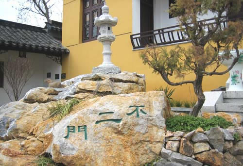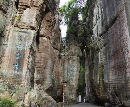 不二門 清嘉慶年間辟有洗心池!安欢T”如斧斫神劈,為石林天成,石林壁上鐫滿歷代文人的詩詠。這里古柏參天,藤蘿倒掛,環(huán)境幽美。有壁石如書的萬卷書者,有嵐霧束腰的七級青石培英塔。凝神盤坐的南海觀音是一塊天然造型的巨石,惟妙惟肖。觀音巖周圍,環(huán)繞著具有明清風(fēng)格的地藏庵、嵩山堂、水府閣等建筑物,布局靈巧緊湊,主題鮮明,因勢造景。景點(diǎn)間曲徑迂回,迷趣深奧,稱八陣圖。景區(qū)內(nèi)的河灘上有兩處溫泉,氤氳縈繞,水溫適宜(41℃),水質(zhì)良好,能治療多種疾病。縣城人民經(jīng)“不二門”前往溫泉就浴者絡(luò)繹不絕,現(xiàn)又增建了石牌坊和民俗博物館。