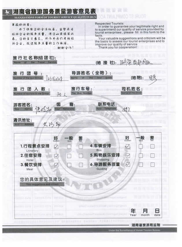 游客具體評價內(nèi)容】:導(dǎo)游小田熱心服務(wù),待人和氣!