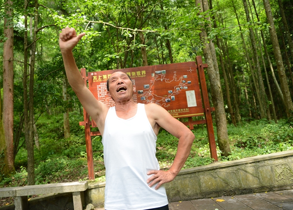 二是老人有個強(qiáng)健硬朗的身板。十多年前,趙如秋查出患有高血壓和腎結(jié)石,他就堅(jiān)持每天在景區(qū)爬山鍛煉身體,結(jié)果還真的有效,不僅腎結(jié)石消除了,高血壓有所緩解,身體也結(jié)實(shí)得很。如今趙如秋老人雖然68了,但說話中氣十足,走路健步如飛,還能挑上150斤擔(dān)子徒步登上鷂子寨、黃石寨,沿路還能唱山歌。