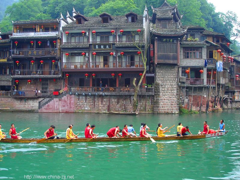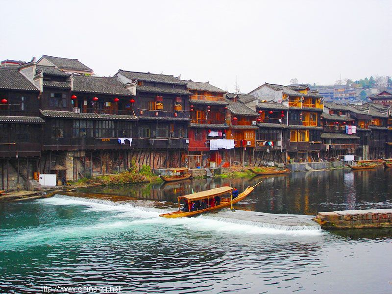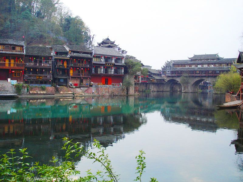 【鳳凰古城位于沱江之畔、群山環(huán)抱、關(guān)隘雄奇、碧綠的沱江依著城墻緩緩流淌,疊翠的南華山麓倒映江中,江中漁舟游船數(shù)點,山間暮鼓晨鐘兼鳴,懸崖上的吊腳樓輕煙裊裊,碼頭邊的浣紗姑笑聲朗朗,兩岸已有數(shù)百年歷史的吊腳樓更是別有一番風味;順水而下穿過虹橋一幅江南水鄉(xiāng)的畫面便展現(xiàn)于眼前--萬壽宮、萬名塔、奪翠樓……一種遠離塵世的感覺悠然而生;鳳凰--猶如“一幅濃墨淺彩的中國山水畫”】(游覽時間約3小時左右)
